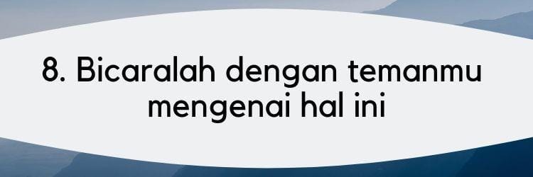 Ketika kamu menceritakan masalah kamu ini kepada seorang teman, yang terbaik adalah menceritakan kepada teman di luar kantor. Namun tidak masalah jika kamu ingin menceritakannya kepada teman satu kantor itu. Tapi bisa jadi itu akan lebih berisiko jika masalah kamu ini menyebar dan menyebabkan masalah yang tambah besar lagi. Dengan membicarakannya dengan temanmu, tentunya kamu akan mendapatkan solusi darinya seperti tetap mengejarnya atau lebih baik dijauhi.