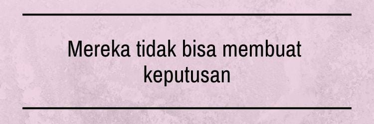 Orang yang tidak bisa dipercaya karena mereka tidak dapat diprediksi dan ketika membuat suatu keputusan tidak ditaati. Clarissa memperingati bahwa ketidakpercayaan juga bisa ditentukan dengan pengambilan keputusan mereka. Jika mereka sering tidak yakin dengan keputusannya sendiri, itu bisa jadi salah satu tanda kurangnya kepercayaan diri. Mereka juga akan mengalami kesulitan untuk mengambil suatu keputusan karena mereka mudah terpengaruh oleh faktor eksternal dan internal.