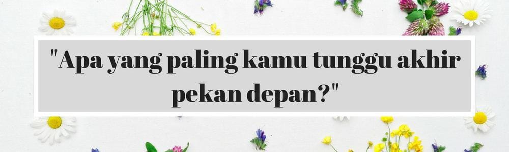 Daripada menanyakan hal yang biasa ia lakukan saat waktu senggang, ubah kalimatnya menjadi "Apa yang paling kamu tunggu di akhir pekan nanti?" Pertanyaan seperti ini dapat memberikanmu pemahaman lebih luas mengenai hobinya. Juga, kamu dapat mengetahui hal-hal yang membuatnya bersemangat menghabiskan hari liburnya. Obrolan bisa bertahan lama dan menyenangkan!
