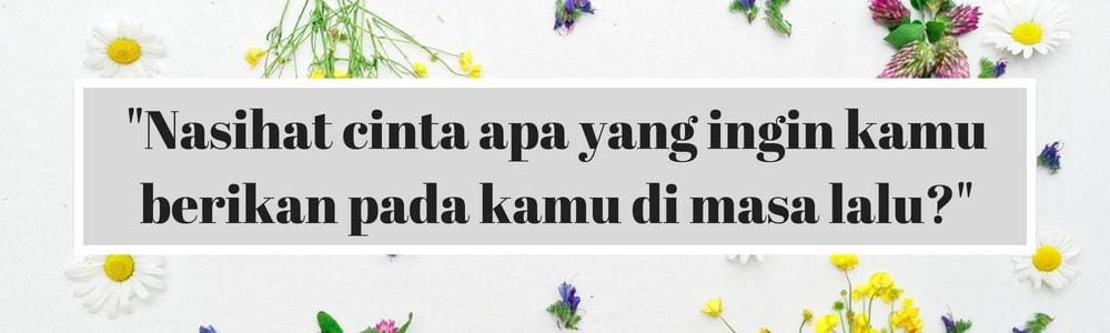 Kamu dan teman kencan pasti memiliki pengalaman asmara yang memalukan. Entah itu diselingkuhi, diputusi, entah merasa cemburu buta, dan sebagainya. Setelah melalui semua itu, tentu ada pelajaran berharga yang didapatkan dan kini kamu berharap dirimu di masa lalu tahu cara menyikapi masalah itu. Kalau bisa mengobrol pada dirimu di masa lalu, apa yang ingin kamu sampaikan padanya?