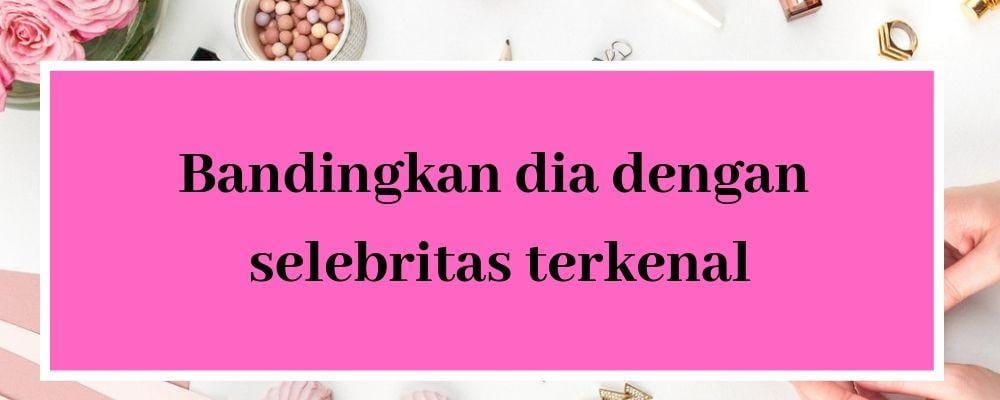 Bandingkan dia dengan dengan selebriti terkenal atau tokoh-tokoh di dalam film yang kamu anggap sangat baik sifat dan kepribadiannya. Hal itu akan membuatnya percaya diri dan sangat dihargai. Tapi, jangan bandingkan dia dengan selebriti yang mendapatkan penghargaan sebagai selebriti paling tampan di dunia, ini akan membuat kamu terlihat sekali mengharapkan dia dan membuatnya merasa nggak nyaman lho, Bela.