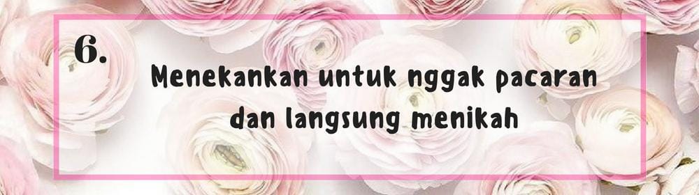 Tentunya kamu tahu nih dalam Islam nggak ada yang namanya pacaran, yang ada ialah ta’aruf kemudian khitbah dan menikah. Proses perjalanan dari awal ta’aruf sampai menikah pun nggak boleh lama-lama agar nggak menggantungkan si calon wanita terlalu lama. Pada umumnya, jangka waktu dari awal perkenalan hingga melangsungkan akad nikah sekitar 3 sampai 5 bulan saja.