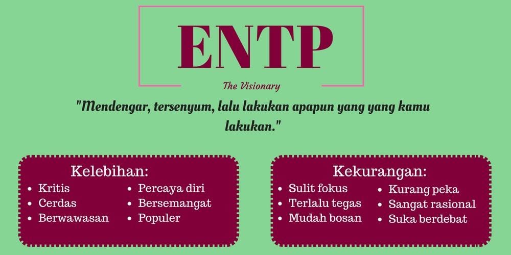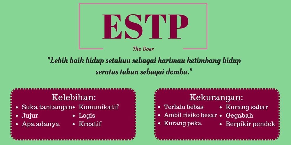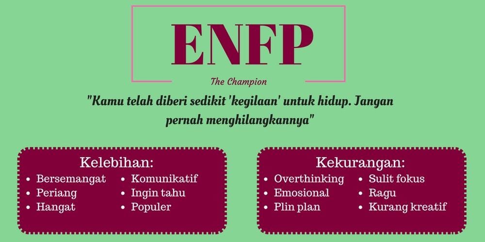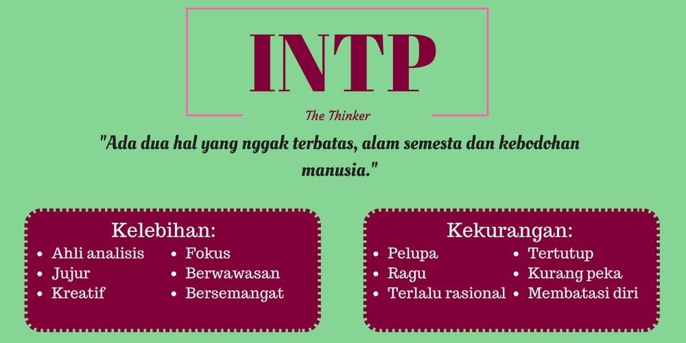 Bela, pernah mendengar MBTI? Myer Brigg Type Indicator atau MBTI adalah tes psikologi untuk mengetahui kepribadian dan cara berpikir kamu dalam berbagai aspek dan situasi, mulai dari karier hingga kehidupan percintaan. Kalau kamu masih skeptis dengan zodiak yang dikaitkan dengan kepribadian, kamu bisa menggunakan MBTI sebagai acuan kamu untuk lebih mengenal seseorang. Buat kamu yang belum mengetahui kepribadianmu, kamu bisa mencobanya di sini. Tapi buat kamu yang sudah tahu, seperti apa sih gambaran singkat tentang kepribadian kamu? Yuk, simak bersama!
