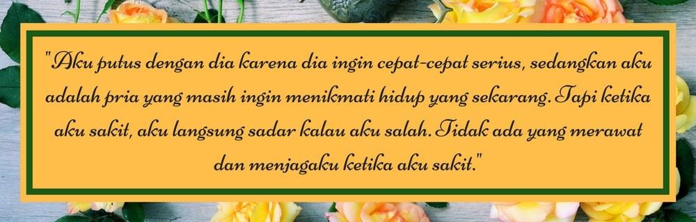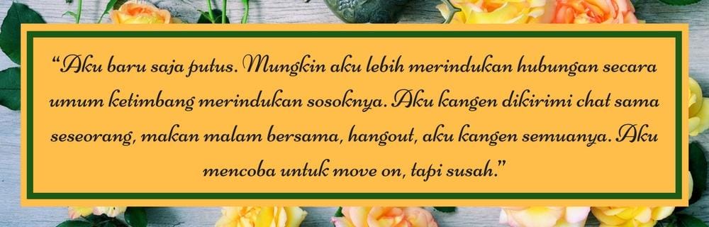Siapa sih yang bilang kalau putus cinta itu menyenangkan? Segala sesuatu yang dijalani dengan sepenuh hati dan harus berakhir itu tentu menyisakan luka, baik di pihak cewek maupun cowok. Banyak cewek yang menganggap bahwa sang mantan terlihat sama sekali nggak sedih atau menyesal karena harus putus hanya berdasarkan sikapnya yang tegar. Memang, cowok itu lebih cepat move on ketimbang cewek, tapi bukan berarti mereka bisa melupakanmu begitu saja. Berikut ini adalah pengakuan para cowok yang akhirnya mau terbuka tentang apa yang mereka rindukan dari mantannya.