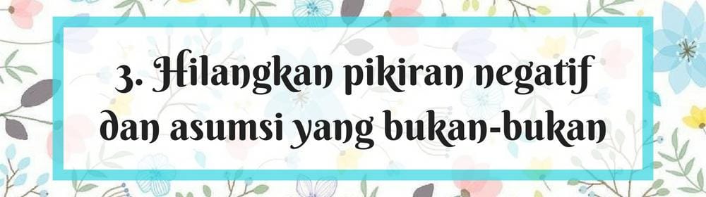 Terlalu berasumsi negatif soal gebetan akan membuatmu kehilangan rasa percaya diri. Misalnya, kamu takut mendekati si dia karena kamu bukan cewek populer atau merasa nggak punya pengalaman saat mendekati cowok. Janganlah berprasangka buruk dulu sebelum kamu mencoba mengenalnya. Cobalah dekati si dia lewat para sahabatnya dan gali informasi dari mereka. Bangun pikiran positif sehingga kamu akan enjoy saat mendekatinya.