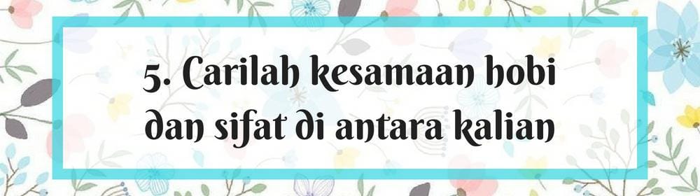 Carilah informasi tentang gebetan, bisa lewat teman-temannya atau lewat media sosial miliknya. Kalau kamu sudah menemukan persamaan di antara kalian, dijamin proses pendekatan yang kamu lakukan akan lebih mudah. namun, kalau yang terjadi malah sebaliknya, jangan langsung menyerah, ya. Kamu bisa mempelajari hal-hal yang ia sukai, seperti musik atau otomotif misalnya. Bukannya memaksamu menjadi orang lain, tapi seenggaknya kamu bisa nyambung mengobrol dengannya saat proses pendekatan.
