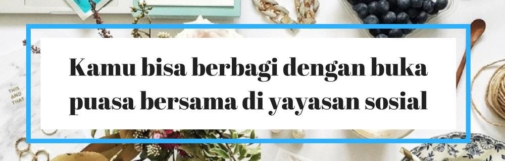 Dengan buka puasa bersama di yayasan sosial kamu jadi bisa berbagi rezeki dan sedikit kebahagiaan yang kamu miliki, daripada harus membuang uangmu untuk buka puasa di restoran bersama pacar.