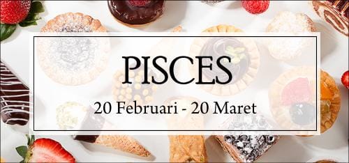 Si zodiak ikan ini suka makanan tradisional yang sudah sering dimakan sebelumnya. Kamu yang lahir di bawah rasi bintang Pisces sangat memerhatikan penampilan makanan yang tersaji, kadang lebih dari rasanya. Kamu adalah tipe yang harus memotret makananmu dulu sebelum disantap. Selain itu, makan bersama teman-teman dan orang-orang terdekatmu lebih penting daripada menu makananmu. Tapi tak salah juga kalau sekali-kali kamu makan pelan-pelan dan menikmati setiap suapannya.