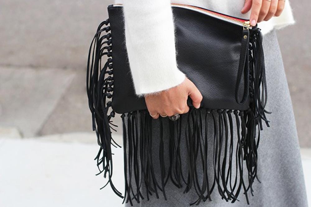 Yuk Buat DIY Leather Fringe Clutch Favorit Popbela