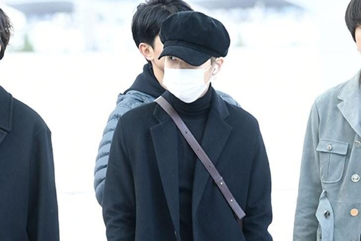 Suga BTS Pakai Tas Bottega Veneta di Bandara